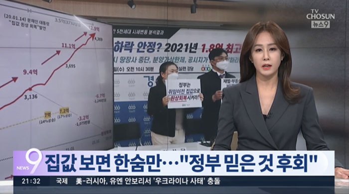 집 값 상승에 정부를 비난하는 기사들(국민의 힘이 집 값 상승을 주장하는데, 정부를 비난하는 기사)