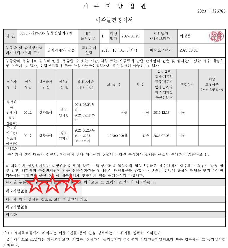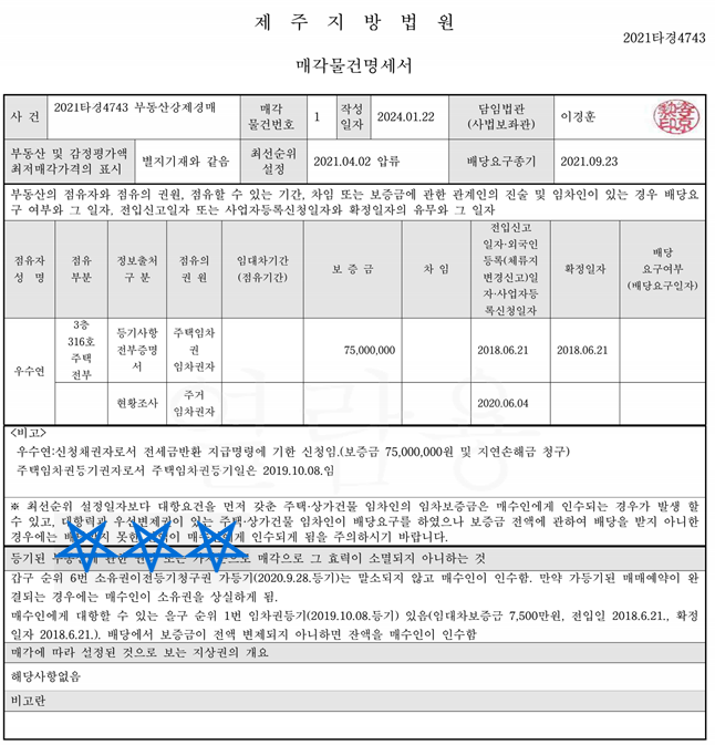 법원경매사이트자료 - 매각물건명세서 내용을 확인할 수 있습니다.