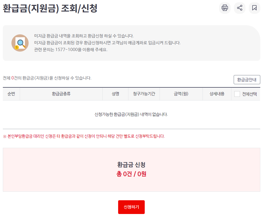 환급 대상자라도 신청을 해야만 환급을 받을 수 있으므로 조회 후 신청하세요.