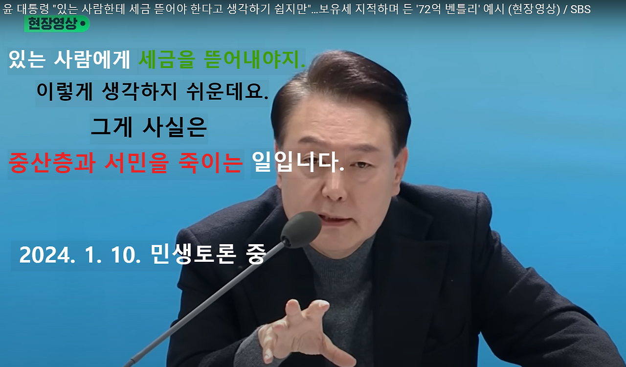 그리고, 5,163만의 국민 중 41만 명 내는 종부세도 '종부세 그거 그렇게 부자들이 내는 세금도 아니에요.'라는 말로써 보유세의 감세의 정당성을 설명하면서 '저희(?) 정부의 정책 타깃은 어디까지나 중산층과 서민입니다.'라고 합니다.