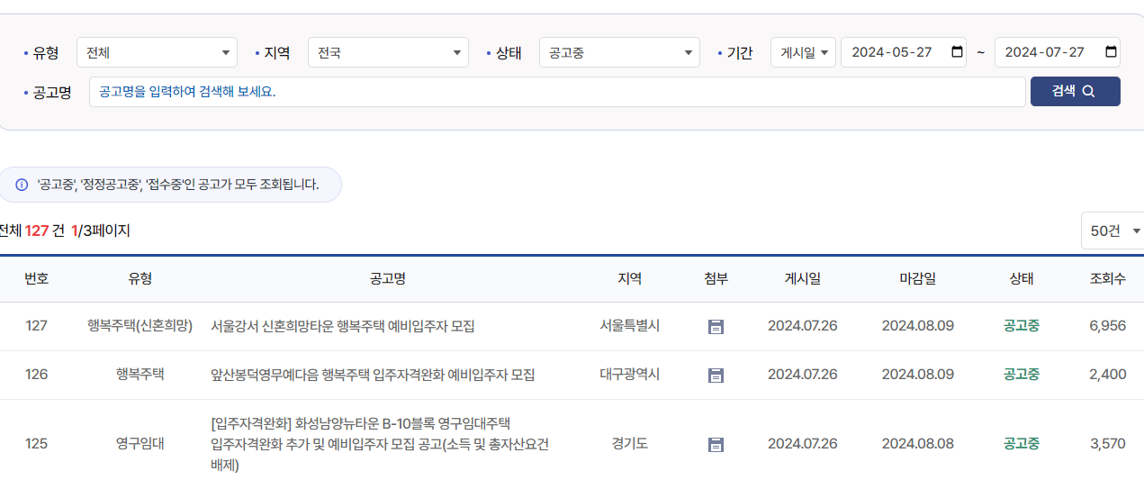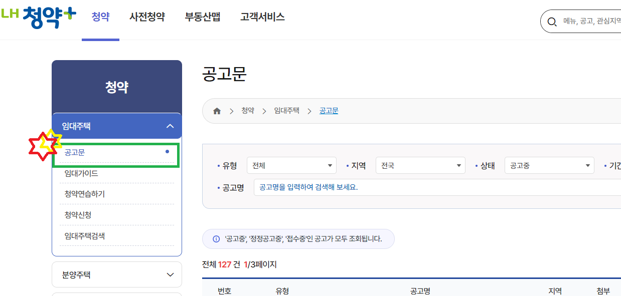 LH청약플러스에 나오는 공고문 정도는