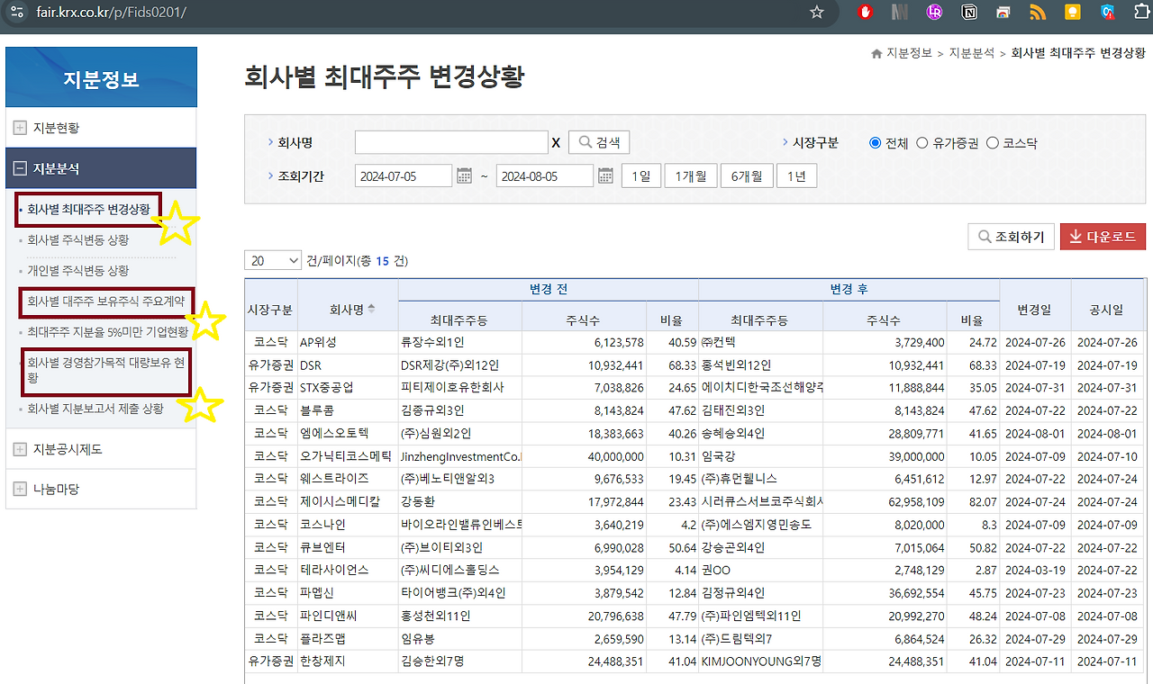 최대주주의 변동에 대한 확인