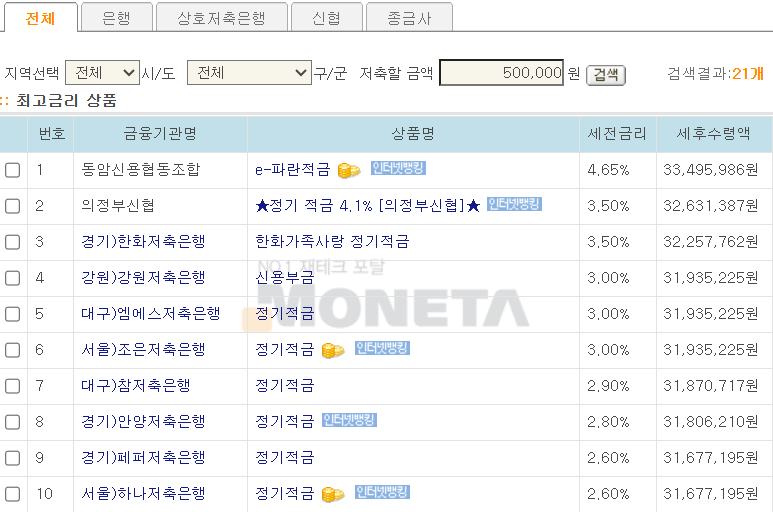 가장 높은 이자를 주는 상품은 은행연합회(예금금리 > 예금상품금리비교 > 금리/수수료 비교공시 > 전국은행연합회 소비자포털 (kfb.or.kr))에서 확인할 수 있으니, 현실적인 저축을 계획합니다.