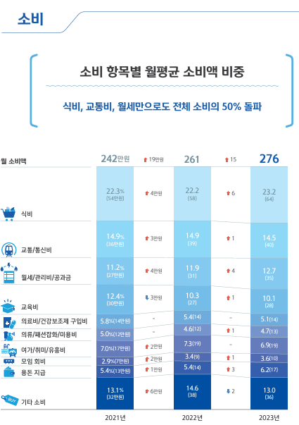 보고서에서는 급여 중 절반 이상인 276만원은 '식비가 64만원, 교통비 40만원, 공과금 35만원, 교육비 28만, 의료비 14만원, 의류 13만원, 여가 19만원, 모임 10만원, 용돈 17만원, 기타 36만원'을 쓰는 것이 보통 사람이라고 합니다.