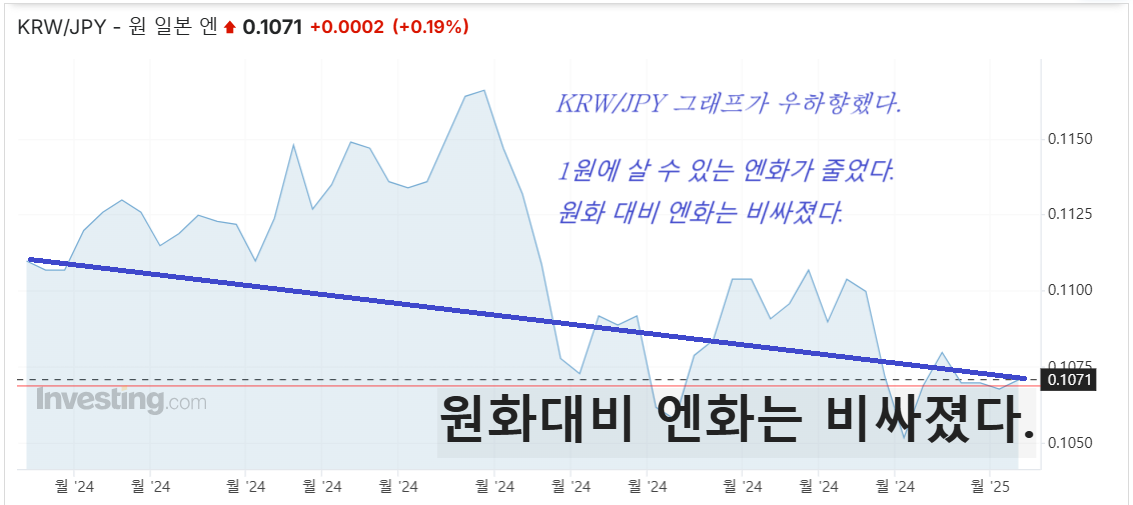엔화가 많이 떨어졌다고 단기간에 수익을 낼 기회가 온 것은 아니야. 엔화가 좀 떨어진 시기에 변함없이 미래를 예측하는 것 뿐이야. 심지어 한국에게 엔화가 싸진 것도 아니잖아.