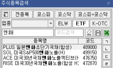 키움 증권에서 거래 가능한 엔화 ETF 4가지가 있는데, H(헷지-위험상쇄방법)가 들어가 있는 것은 달러를 걸쳐서 엔화를 투자하는 방식이라서 엔화의 움직임과 달러의 움직임 그리고 다시 수익으로 바꾸는 한화의 움직임까지 알아야 하니까 예측이 더 어려울 거야.