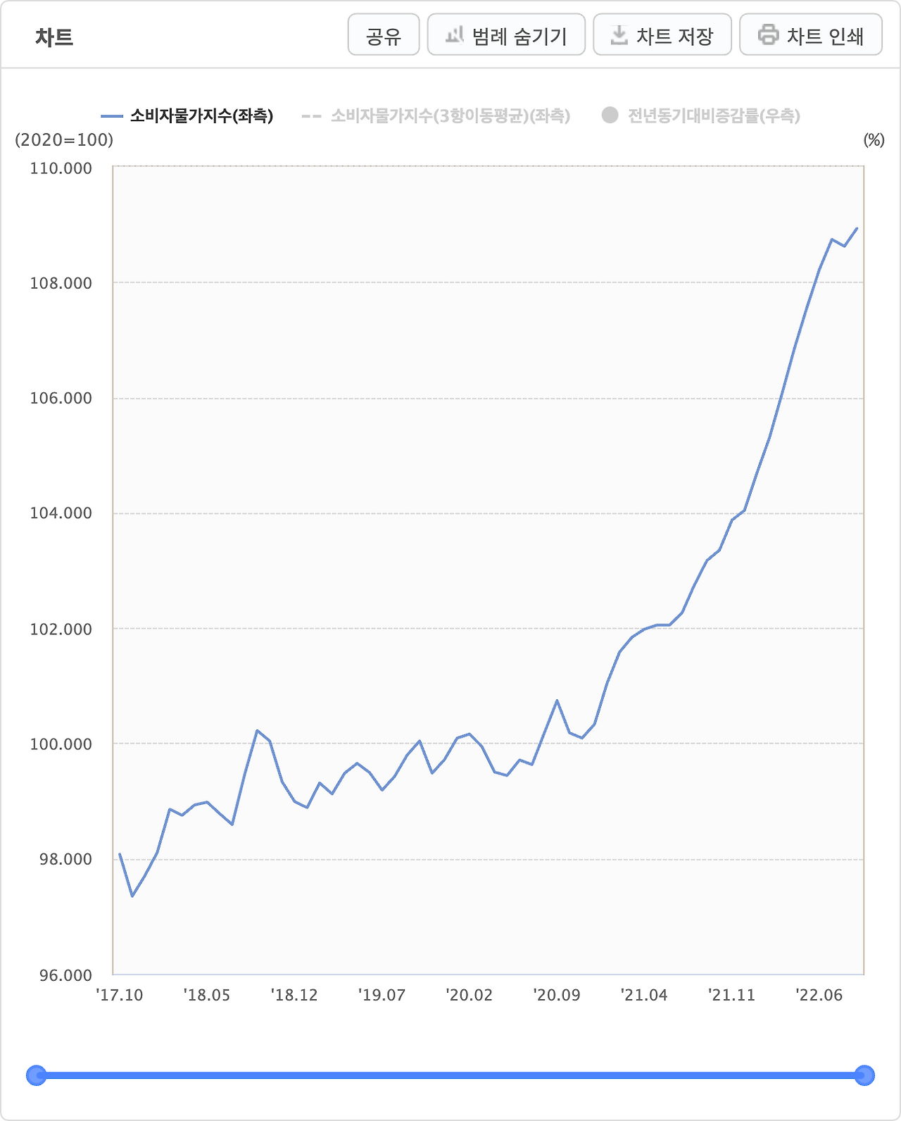 물가는 한자어로 물건의 '물 物' 가격의 '가 價'을 써서 물건의 가격을 뜻하지만, ‘세상사는 비용'정도로 이해해도 될 것 같아요. '세상사는 비용'이 오르고 내리는 것을 물가가 오르고 내린다고 하는 것이죠.