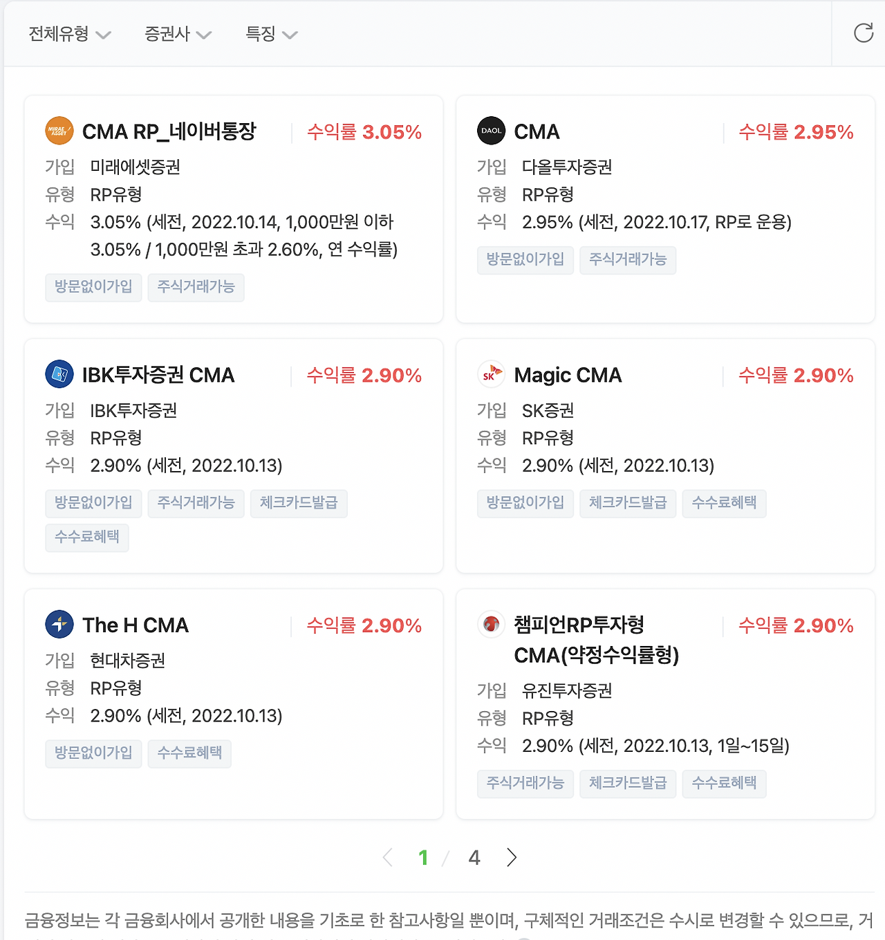 익숙하지 않아서 평가절하 되어 있지만, 저는 급한 돈 아니면 모두 CMA에 넣어 둬요.