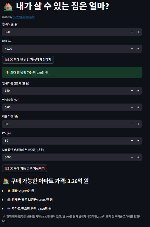 아래 링크에서 당신의 월급, 월세, 대출 조건 등을 입력하면