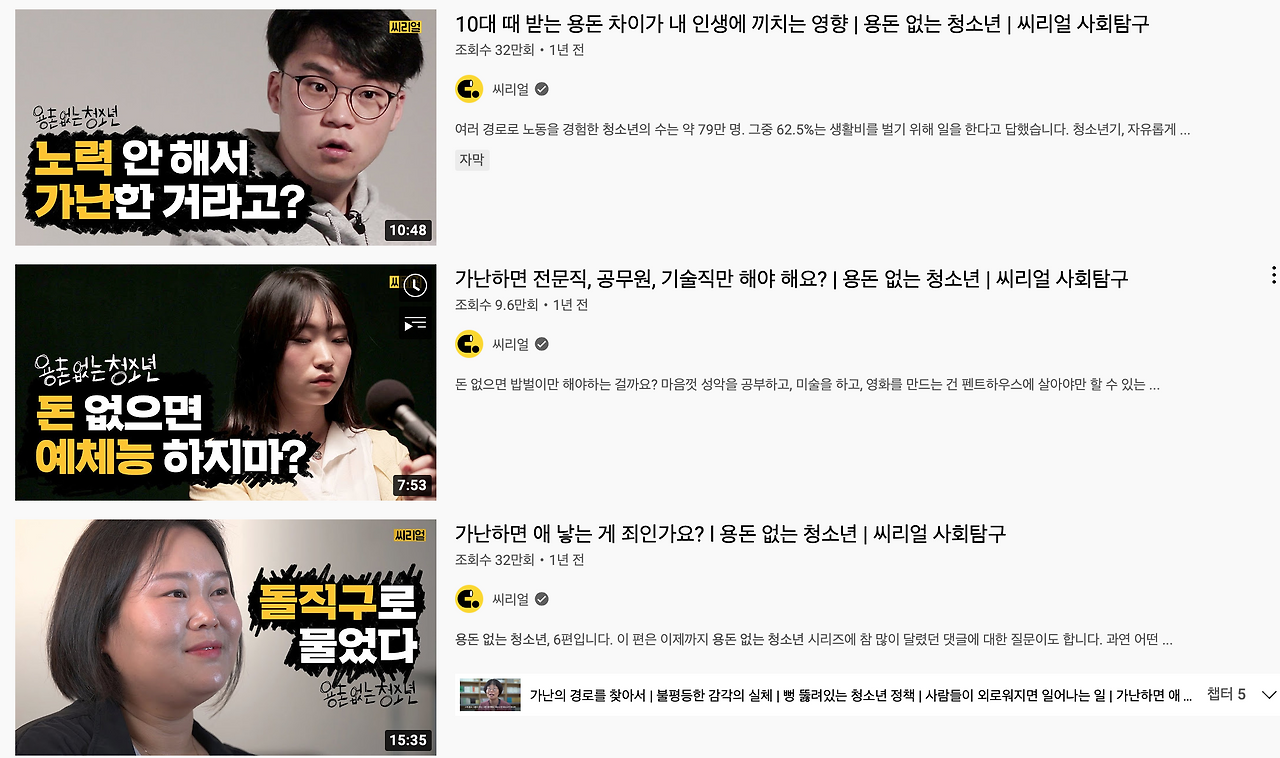 시리얼채널 '용돈없는청소년' 탐사보도물