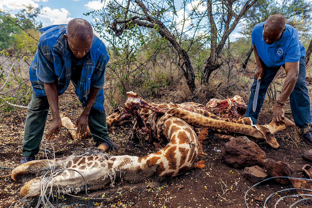 야생동물 전문 수의사 피트 모켈(59)이 수의사 생활을 하면서 포획해야 했던 사자, 둥근귀코끼리, 흰코뿔소 같은 대형 아프리카 포유동물 중 잡을 때 가장 골치 아픈 동물은 기린이다. “다른 동물들은 소량의 마취제를 사용해 녀석들이 움직일 수 없도록 하면 되지만 기린의 경우는 녀석을 완전히 쓰러뜨리기 위해 약물을 과다 투약하거든요.” 모켈이 말한다. 나는 니제르의 수도 니아메에서 동쪽으로 약 100km 떨어진 덤불숲에서 두 살배기 암컷 기린에게 몰래 접근하고 있는 모켈을 몰래 따라가고 있다.