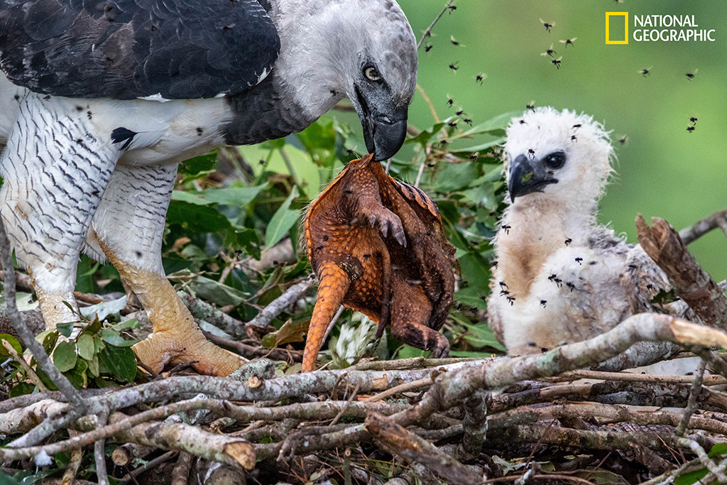 흑백의 날렵한 몸과 매서운 눈, 화려한 관모를 가진 남미수리는 세계에서 가장 큰 수리류에 속하며 지구상에서 가장 멋진 새일 뿐 아니라 조류를 관찰하는 사람들이 가장 보고 싶어 하는 새 중 하나다. 남미수리의 발톱은 회색곰의 발톱보다 크기도 한데 녀석들은 이를 이용해 다 자란 나무늘보를 나무에서 낚아챌 수 있다. 또한 암컷의 경우 무게가 11kg 가까이 나가기도 한다.