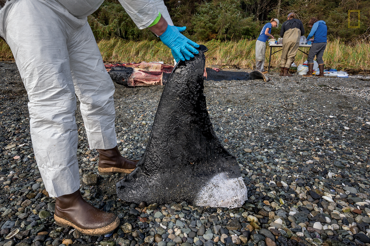 캐시 리페브는 코디액 섬에서 북쪽으로 320km 떨어져 있고 바람이 몰아치는 바위투성이의 해변을 걸어가면서 죽은 고래에 대한 이야기를 하고 있다. 알래스카 만의 서부 지역에서는 보통 일년에 약 8마리의 고래가 죽은 채 발견된다. 하지만 2015년에는 6월에만 최소한 12마리가 떠올랐다. 썩어가는 고래의 사체들은 여름 내내 태평양의 파도를 타고 알래스카 주의 앵커리지에서 알류샨 열도까지 거리 1600km에 걸쳐 있는 여러 작은 만으로 떠내려왔다.