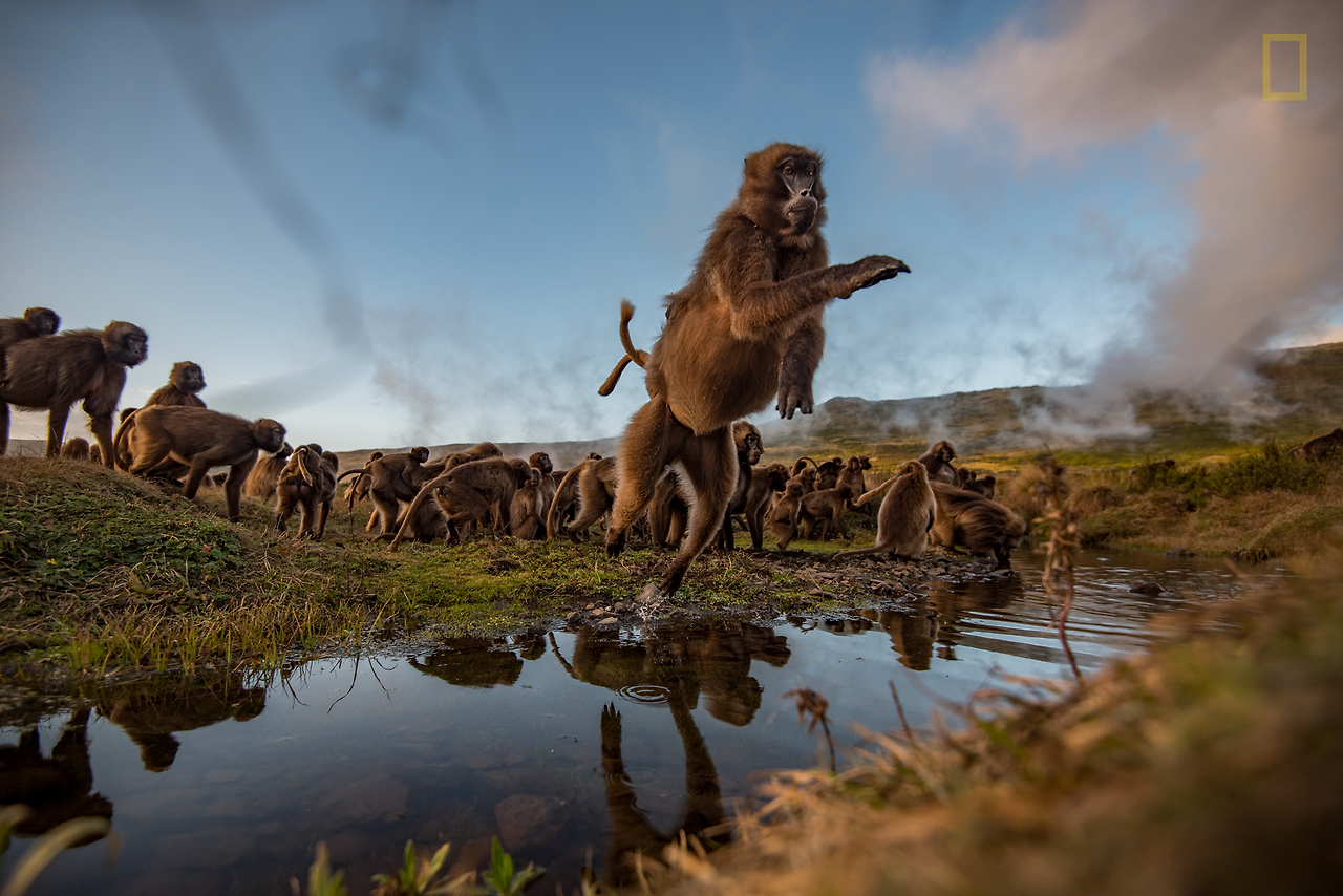 게타네는 절벽을 등지고 돌아선다. 그리고 그는 망원경을 들어 올린다. “이렇게 하면 녀석들이 움직이는 모습을 다 볼 수 있어요.” 그는 설명한다. 게타네는 간혹 ‘피 흘리는 심장을 지닌 원숭이’라고 불리는 겔라다개코원숭이에게 별로 관심이 없을지도 모른다. 그러나 겔라다개코원숭이가 번성하는 이유는 그가 이곳에 있기 때문이다.