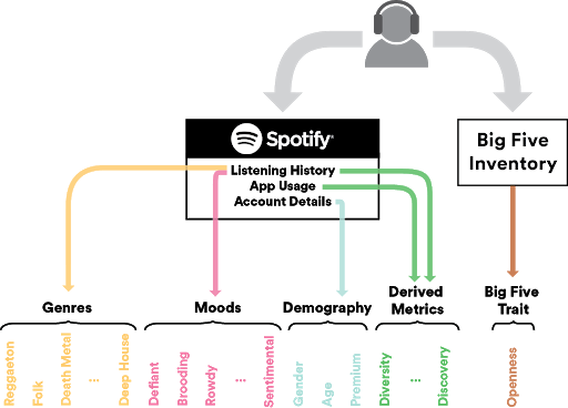 (6) Anderson, I., Gil, S., Gibson, C., Wolf, S., Shapiro, W., Semerci, O., & Greenberg, D. M. (2020). “Just the Way You Are”: Linking Music Listening on Spotify and Personality. Social Psychological and Personality Science, 12(4), 561-572. https://doi.org/10.1177/1948550620923228 (Original work published 2021)