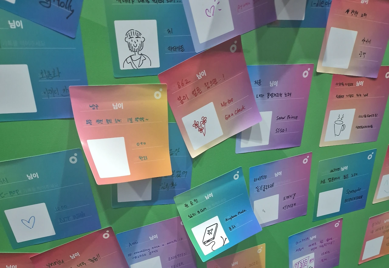 지난주, 국내 음악 스트리밍 플랫폼인 멜론(Melon)에서 2월 13일~15일, 3일 간 브랜드 캠페인 '멜론, 음악 기록 시대의 시작'을 모토로 팝업 존과 청음실을 운영한다는 소식을 들었다. 여태껏 멜론을 사용한 것도 아니었지만 어떻게 팝업 이벤트를 기획했는지 알아보기 위해 성수에 있는 성수율 뮤직을 방문했다. 우선 성수역 출구에서는 오늘이 어떠한 음악으로 기억될 수 있는지 메모지로 적고 붙이며, 경품 추천을 할 수 있는 일련의 참여 과정이 있었다. 성수율 뮤직 카페에서는 3층에서 청음 프로그램이 진행되며 몇 가지 테마로 구성된 사적인 플레이리스트를 감상할 수 있게 제공되고 있었다. 금요일 저녁임에도 사람이 없어서 그런지 딱히 이벤트를 참여하지 않아도 들여보내주셨다. 청음 공간에서는 '모먼트' 서비스 QR를 찍어서 음악 에피소드를 남길 수 있고 음악이 청음실에서 재생되어 모두에게 공유되는 식이었다. 음악 기록은 일반 감상자뿐만 아니라 카더카든과 같은 유명 뮤지션이 남긴 것들도 소개가 되었고 청음실에 들어갔을 즈음에는 청춘의 한가운데에서 힘이 되는 곡을 위주로 음악이 스트리밍되고 있었다. 음악만 즐길 수 있는 공간이라니 독특했지만 막상 오픈채팅으로 모먼트를 공유했더니 접수 시간이 마감되었다고 하니 아쉬웠다.