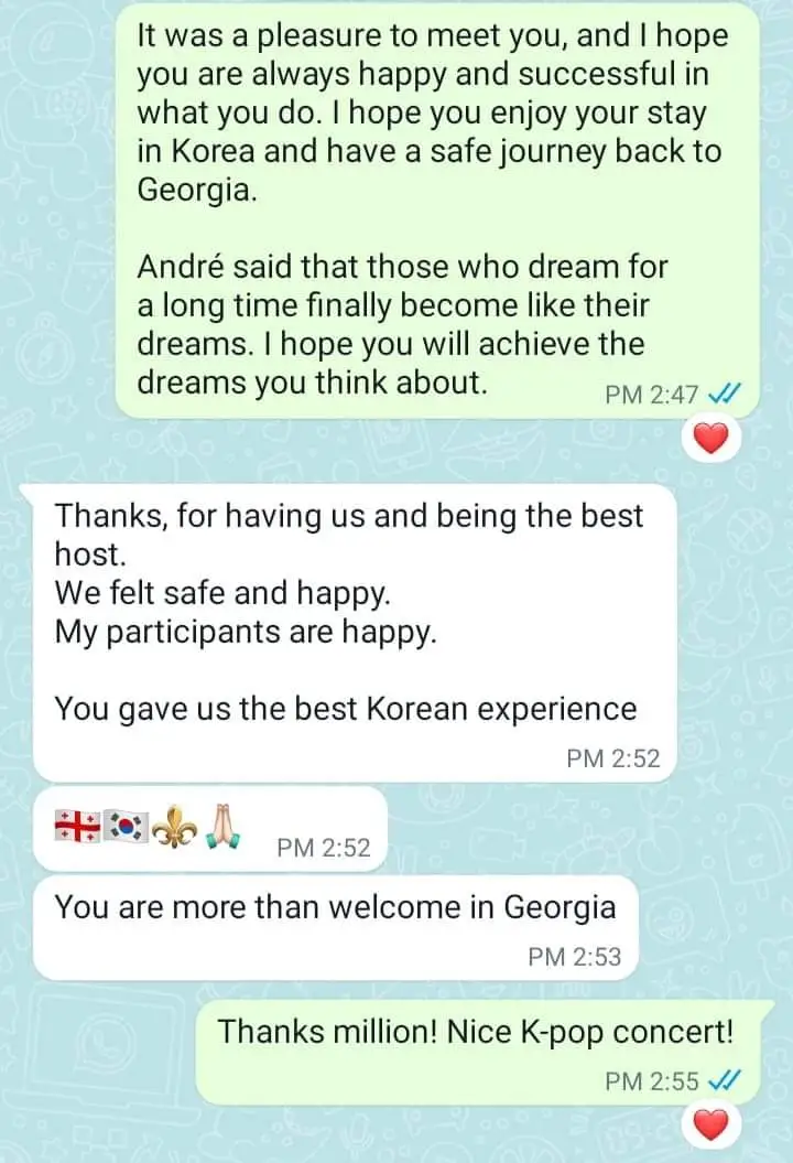 It was a pleasure to meet you, and I hope you are always happy and successful in what you do. I hope you enjoy your stay in Korea and have a safe journey back to your country.