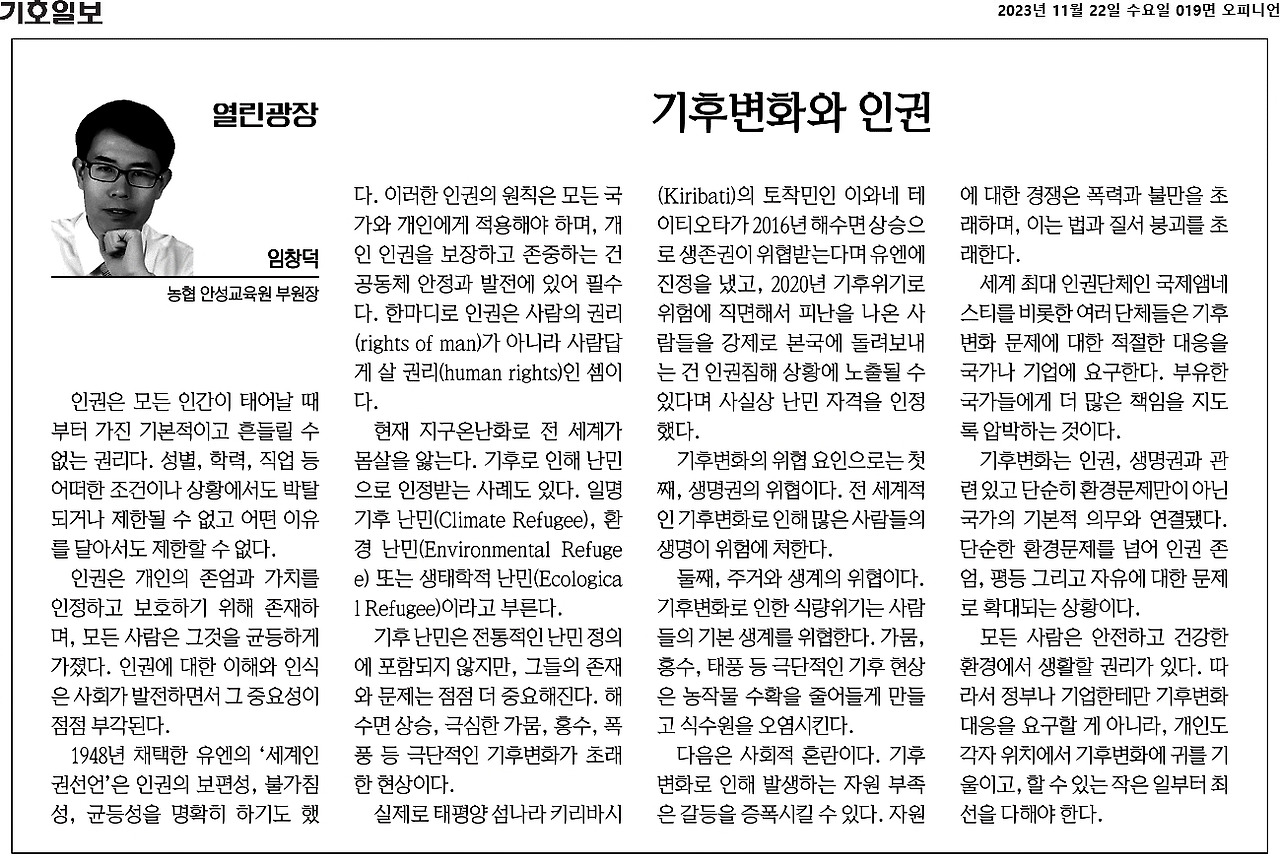 기후변화는 인권, 생명권과 관련 있고 단순히 환경문제만이 아닌 국가의 기본적 의무와 연결됐다. 단순한 환경문제를 넘어 인권 존엄, 평등 그리고 자유에 대한 문제로 확대되는 상황이다.