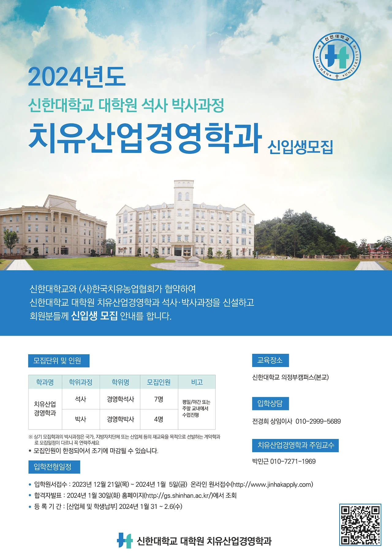 신한대학교 대학원 치유산업경영학과 신입생 모집