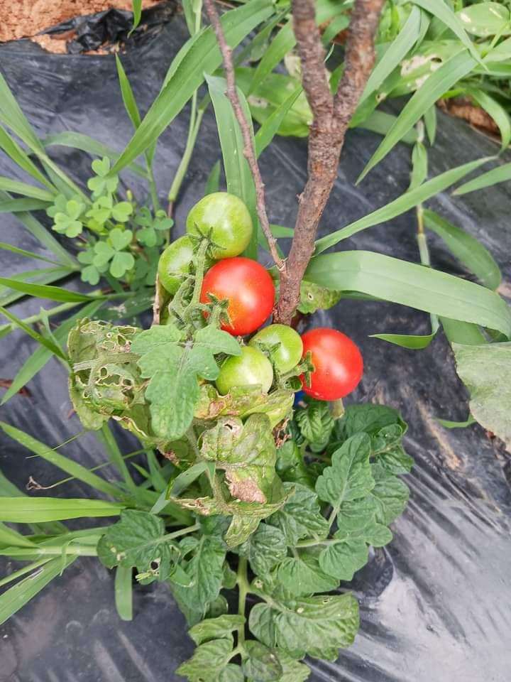 2023년 여름, 발코니 토마토가 시들해지자, 교육원 노지 텃밭으로 옮겨 심었더니 키는 크지 않으면서도 열매를 맺기 시작 <2대 토마토>