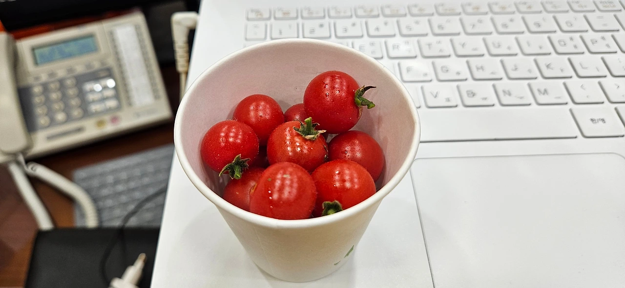 2024년 2월 19일 현재, 붉은 토마토가 사무실 분위기를 연출해주고 있음 <3대 토마토>