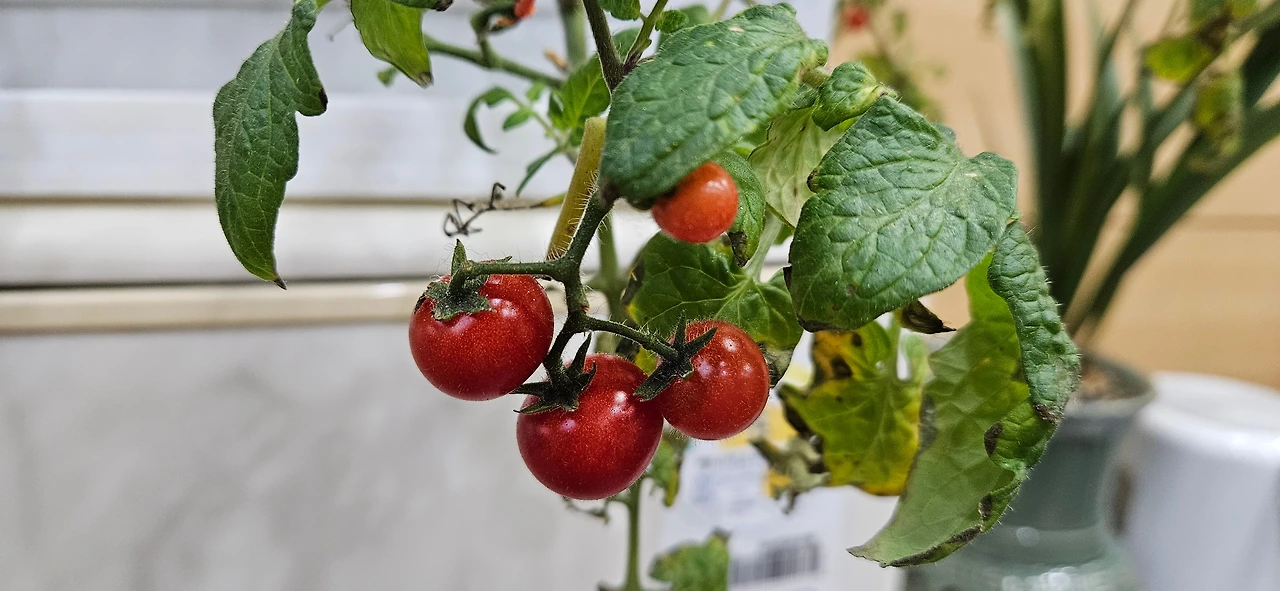 이 토마토는 2년전 키트로 받은 것을 3대째 키우고 있으며, 수확한 것은 씨앗으로 재 식재해서 4대로 이어짐