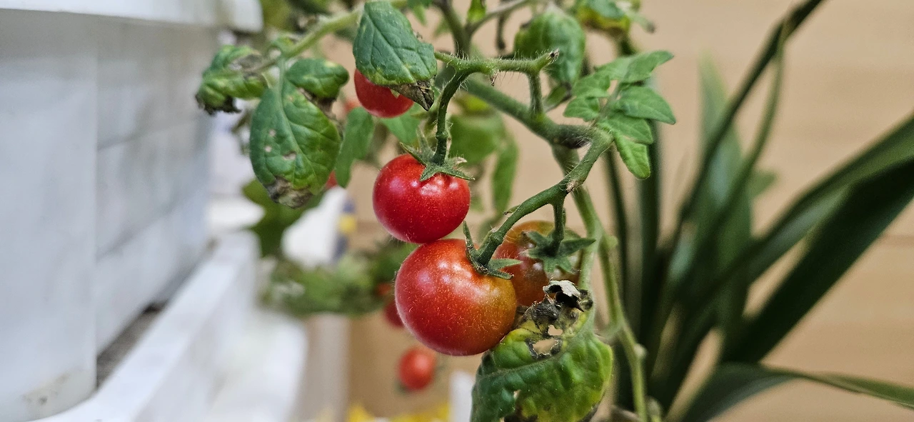 2024년 1월, 토마토가 달리기 시작하고 햇빛을 많이 받게 하기 위해 사무실로 옮김