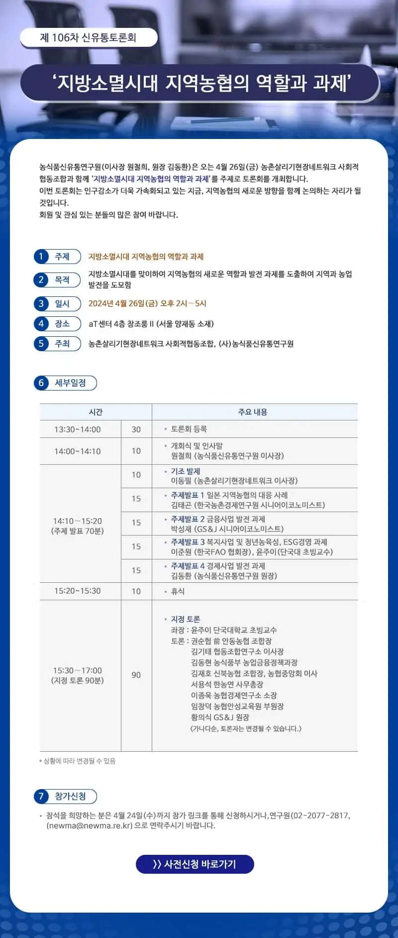 지방소멸시대 지역농협의 역할과 과제 토론회