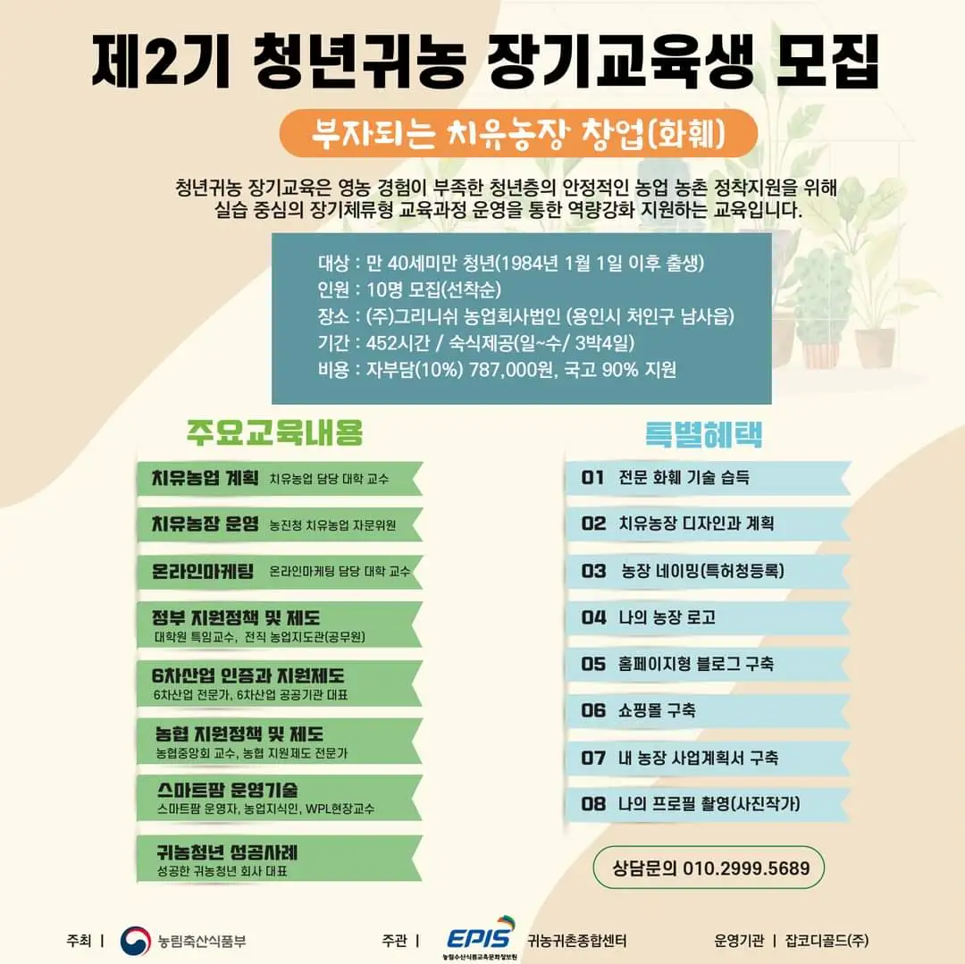 청년층이 성공적인 창농에 필요한 역량과 경험을 실제 복합농업 활동과 농촌 생활을 통해 직접 학습할 수 있도록 교육기관별 특색 있는 교육 구성