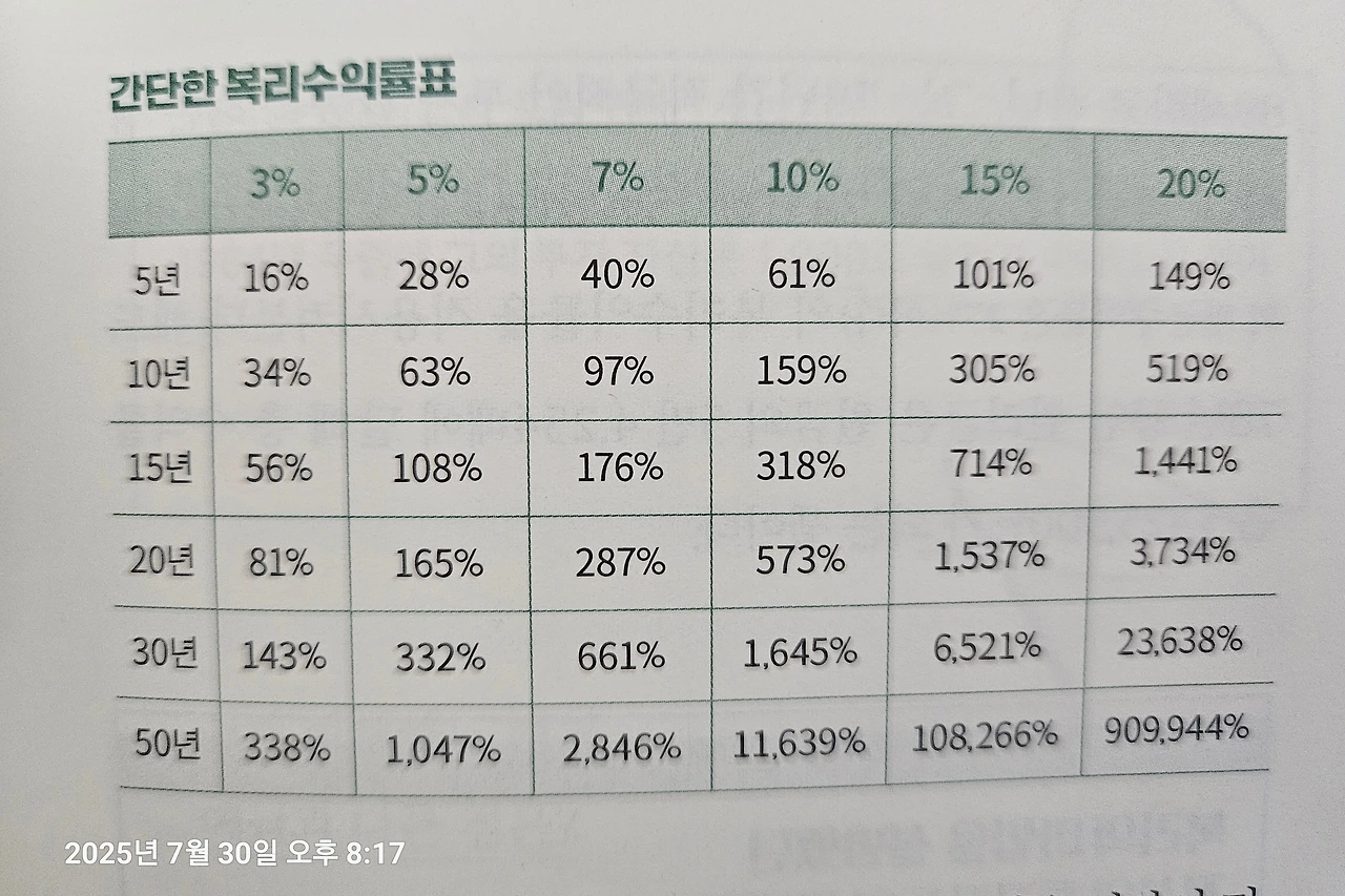 복리 계산표. 1억을 10%에 10년 묻어두면 159%로, 1억의 이자만 1.59억원, 총 2.59억이 된다는 의미. 버핏의 550만% 수익률...