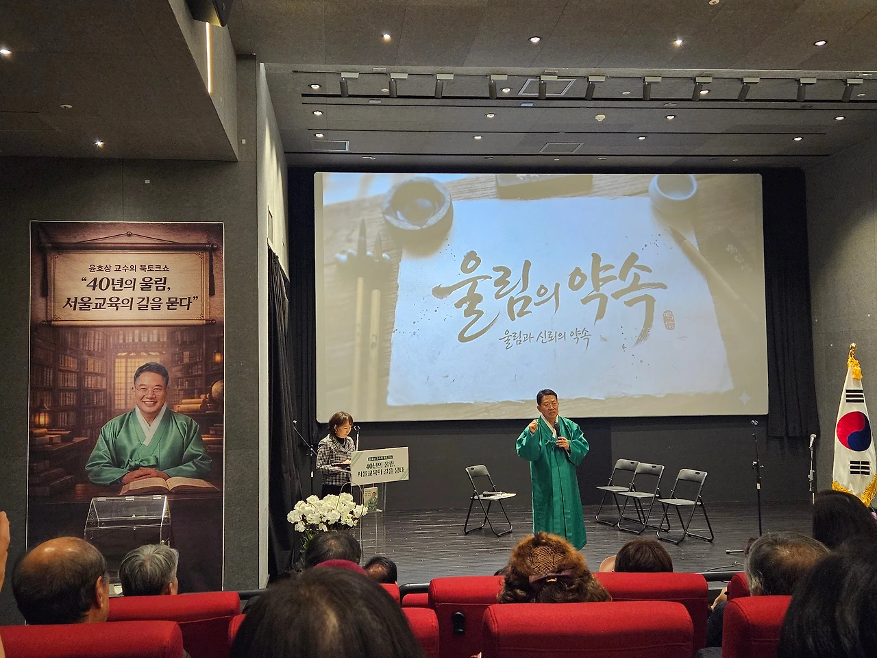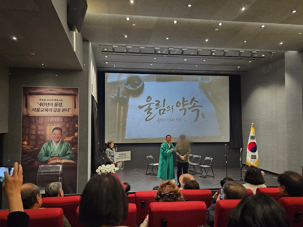 무엇보다 객석을 채운 제자들의 눈빛~ 스승의 새로운 시작을 축하하기 위해 한걸음에 달려온 제자들, 90대 스승과 전화통화에서 옛날 별명이 윤스탈로찌(교육의 아버지 페스탈로찌) 였다고 칭찬하는 걸 들으니, 후보님이 걸어온 길이 얼마나 진실하고 다정했는지 느낄 수 있었음.