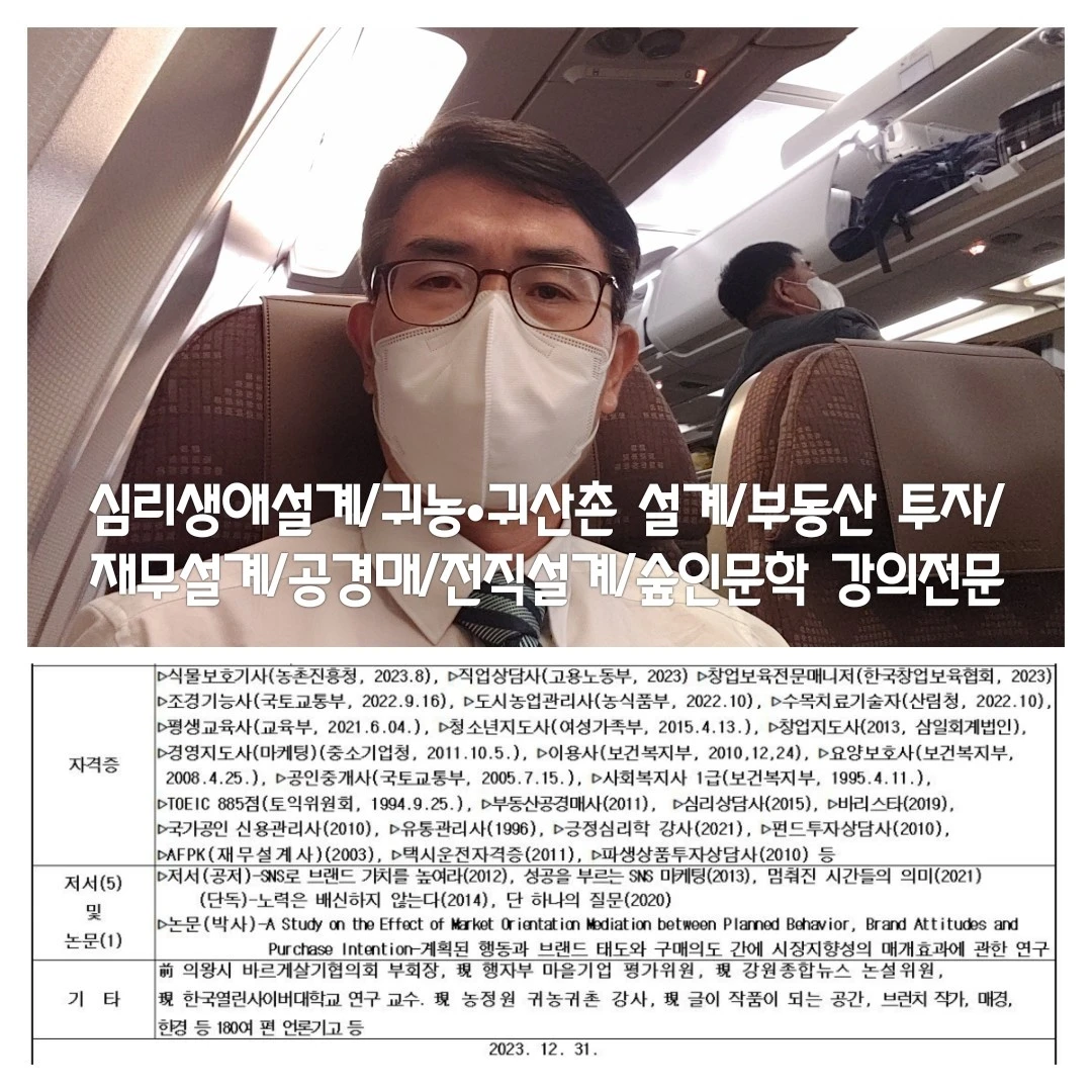 수목치료기술자,조경기능사, 도시농업관리사,공인중개사사회복지사1급,요양보호사,부동산공경매사,재무설계사,펀드투자상담사,이용사,경영지도사(마케팅), 신용관리사,TOEIC 885점, 창업지도사,청소년지도사, 평생교육사,심리상담사,동아일보 등 180여 편 기고,노력은 배신하지않는다, 단 하나의 질문 저자 등
