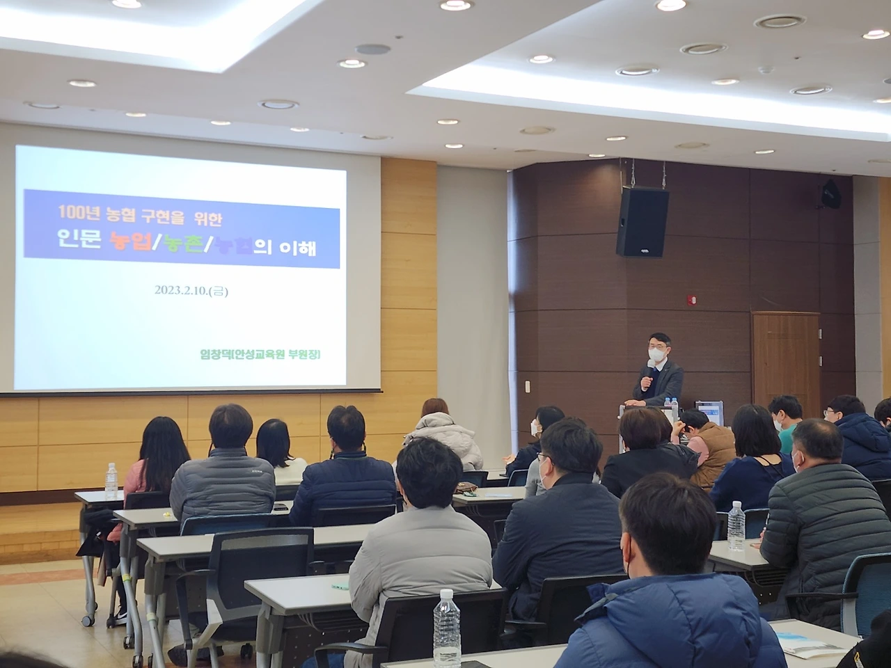 농협 신임 검사 대상으로 농업의 탄생과 농업 문화에서 파생된 걸쳐코드, 농촌의 현실과 향후 전망에 대한 강의를 진행했습니다.