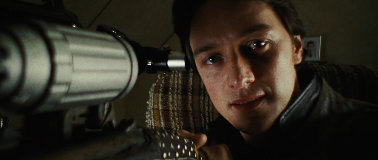 자신의 인생에 있어서 주인공이 되지 못하는 그에게 하나의 큰 변화가 찾아온다. 어느 날 나타난 폭스(앤젤리나 졸리 분)는 등장과 함께 주인공의 목숨을 노리는 크로스(토마스 크레슈만 분)와 총격전과 추격전을 벌이게 된다. 폭스는 크로스를 따돌린 이후에 자신이 속해있는 '형제회(The Fraternity)'라는 킬러 집단의 은신처로 데리고 가, 그가 사실은 킬러의 아들이며 그 또한 킬러가 될 운명이라고 말해준다. 은신처에서 슬론(모건 프리먼 분)은 그에게 총을 주며 파리의 날개를 쏘게 시킨다. 웨슬리는 머리에 겨눠진 총구에 떠밀려 자신이 갖고 있는 심장 발작을 이용해 그것을 성공시킨다. 이 장면이 시사하는 바를 살펴볼 필요가 있다.