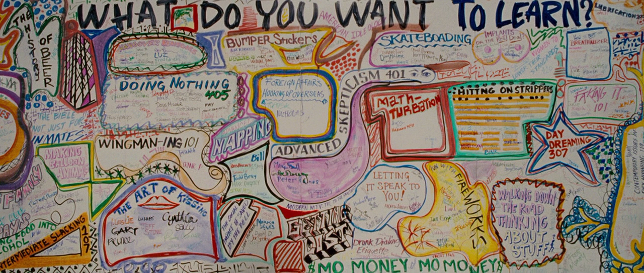 영화에서 가짜 총장인 '벤(루이스 블랙 분)'은 '배움은 관심을 갖는 것이다.'라고 말하며, 배움의 자세에 있어서 수동적이기보다는 주체적인 관심을 통해 능동적으로 이루어진다고 주장한다. 사우스 하몬 기술 대학에서는 학생들이 마음대로 학과를 설정하고, 관심이 있는 수업을 조건 없이 들어가 능동적인 배움을 추구할 수 있게 되었다. 덕분에 정적이고 생기 없는 모습의 이름만 명문인 하몬 대학과는 전혀 다른 분위기로 언제나 사우스 하몬 기술 대학에서는 언제나 활기 넘치는 모습이었다.