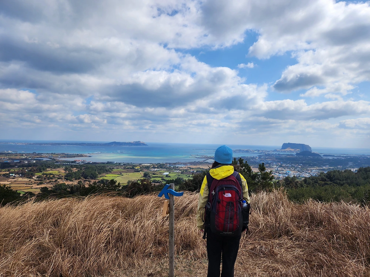 1코스는 초반부에 말미오름, 알오름을 차례로 오르고 나머지는 느긋하게 평지 길만 이어지니, 여기야말로 시작이 반이란 말에 꼭 맞는 곳이다. 길을 시작하고 3,40여 분만에 루트의 가장 높은 곳에 올랐기에 여기서 정상주를 마시자며 막걸리 한 잔씩을 기울이니 후배님이 기가 차 한다.