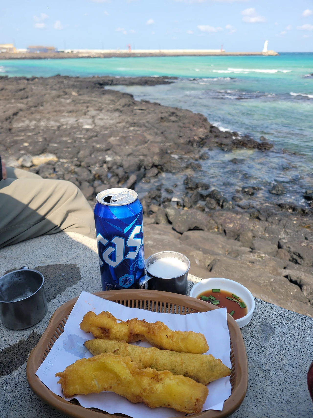 세화오일장 맛나분식에서 튀김을 먹으려 바다가 예쁜 세화에서 시간을 보냈다. 어제 돔베고기집에 이어, 다음의 먹기를 위해 애써 시간을 보내는 기이한 여행을 하고 있다. 일행 중 둘이 카페에서 유유자적 할 때, 나와 다른 이는 바다 앞 방파제에 쪼그리고 앉아 맥주를 찌끄렸다(찌끄린단 말에 후배는 많이 놀라더라^^). 오징어 튀김과 고추 튀김을 사들고 바닷바람 싸대기 맞으며 홀짝이는 맥주 맛은, 음.... 되게 추웠다. 추운 것 이상, 짜릿하고 좋았다. 이 맥주 맛은 오래 기억될 거라고 동행이 말한다. 나는 그 말을 오래 기억하며 그 맛을 되새겨야지.