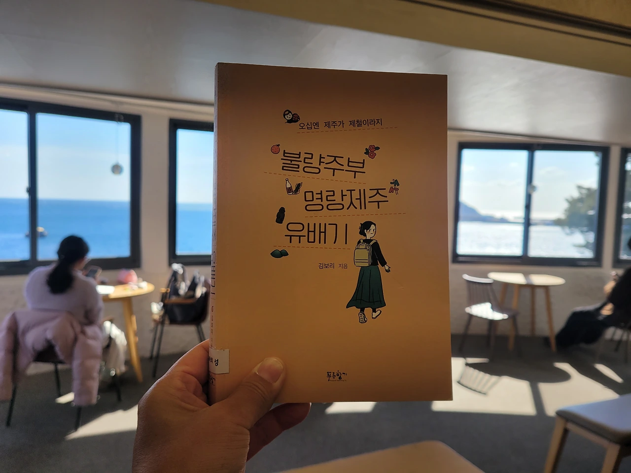 둘 째 날엔 후배님이 추천한 맛집을 찾아 서귀포로 내려간다. ‘맨도롱해장국’에서 쟁이해장국과 보말해장국을 후루룩 한 그릇씩 비우며 제주막걸리를 기울인다. 저녁때까지 차 쓸 일 없게 일정을 짜놓고 운전자에게도 술을 권한다. ‘아침부터 또 막걸리를?’. 문장 하나가 후배의 눈에 아른거리지만, 그 역시 즐기는 눈치라고 내 맘대로 해석한다. 제주막걸리의 북방한계선은 추자도. 그러니 마실 수 있을 때 마셔야 하는, 숙명 같은 것이라고나 할까. 역시나 후배가 추천한 유동커피에서 잠깐 쉬었다가 버스를 타고 쇠소깍으로. 6 코스는 십 키로 쯤이라 부담이 없다. 중간 스탬프는 종착지 거의 다 되간 지점 ‘소라의 성’에서 찍게 된다. 예전엔 해물뚝배기 전문, 관광객이 주를 이루는 식당이었고 지금은 작은 도서관으로 활용 중이다. 창에 든 바다 뷰가 예쁜 곳이라 서귀포에 묵을 땐 이따금 들르던 곳. 서가에 내 책이 꽂혀 있기에 채신머리없이 오두방정을 떨며 후배에게 사진을 찍어 달라 했다. 제주에 관한 책을 죄다 모아둔 책장에서 찾았으니, 되게 신기한 일은 아니나, 초짜 작가로선 적이 뿌듯하더이다. 저녁도 후배 추천 돔베고기 집 ‘천짓골식당’에서. 고기를 덩이 째 테이블에 갖다 놓고 칼을 놀리시는 여사장님이 멋지다. 운짱은 술을 하지 못하고 콜라와 사이다를 거푸 비운다. 고기를 덜 하는 나는 막걸리만 연신 마셔댔다. 운짱님을 위해 돌아오는 길에 장을 봐 숙소에서 한 잔 더 기울이고 하루를 마감했다.