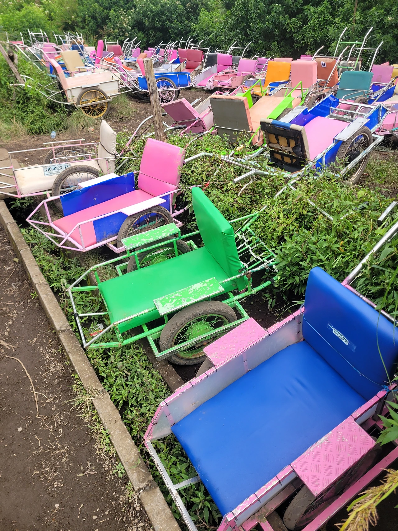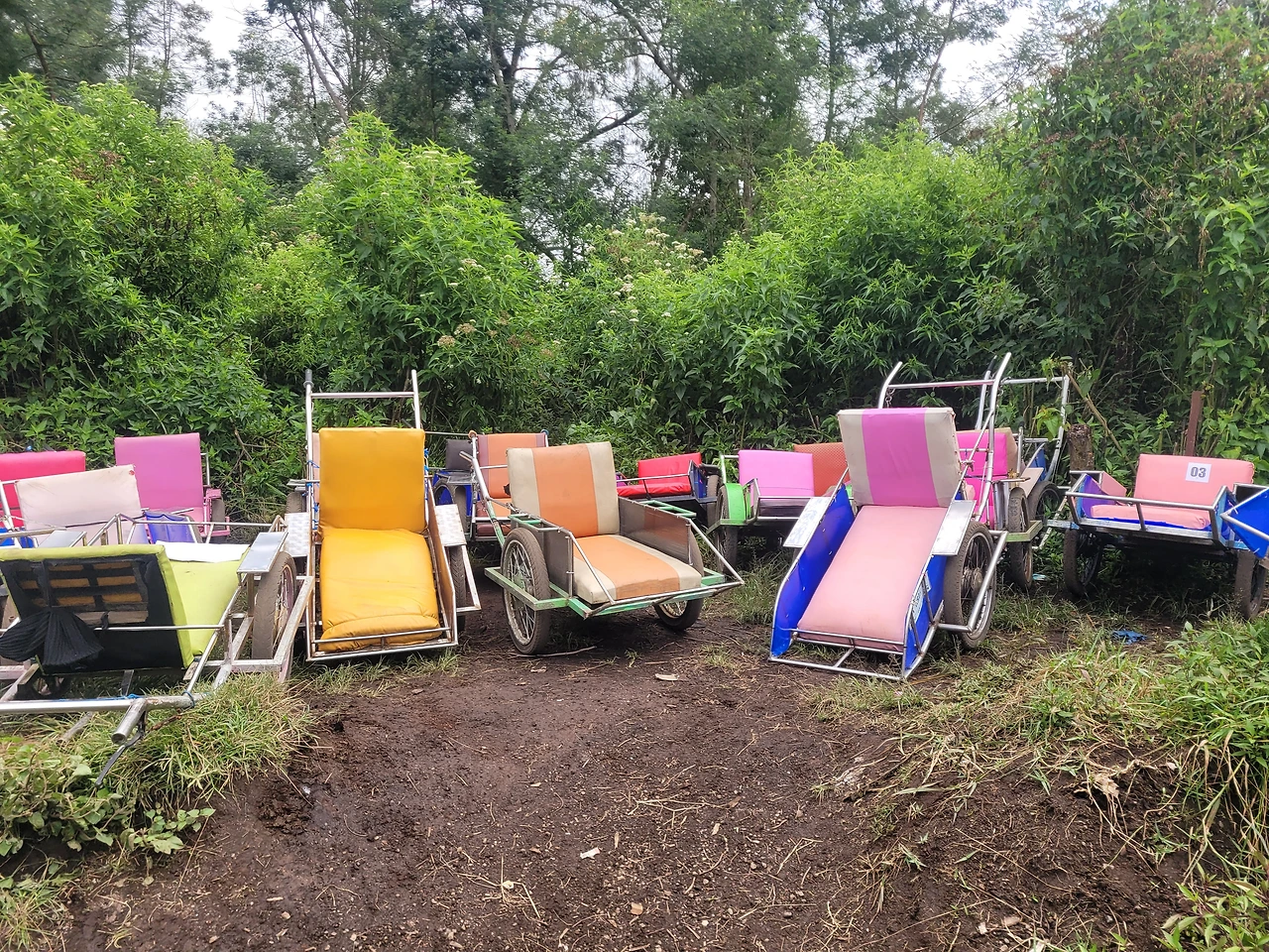 이젠 화산에서 유황을 캐는 노동을 하다가 힘들기도 하고, 유황이 많이 나지도 않아 죽기 살기로 영어를 배워 가이드로 전업했다고 한다. 그 시절(10년 전)엔 20킬로를 지고 가면 1달러, 지금은 10킬로를 지면 1달러를 준단다. 다수의 유황 노동자들은 이젠 산의 트롤리 운전사로 전업했다. 알록달록 치장한 리어카를 옆에 끼고 “람보르기니~” “벤츠~” “도요다 도요다~” 목소리 높이며 영업한다. 제법 가파른 경사 구간과 험한 바위 길을 끼고 있는 왕복 8킬로미터의 등산로. 오륙십 대의 깡마른 남자들이 사람 하나를, 때론 둘을 태우고 그 길을 오르락내리락한다. 왕복 십만 원이 넘으니 제법 큰돈이기도 하다. 손목은 성할까. 팔씨름하면 이길 한국 남자 없을 듯. 누군가의 단단한 일상을 괜한 연민의 시선으로 재단하지 않으려 애썼으나, 그래도 눈이 마주칠 때마다 마음이 싸했다.