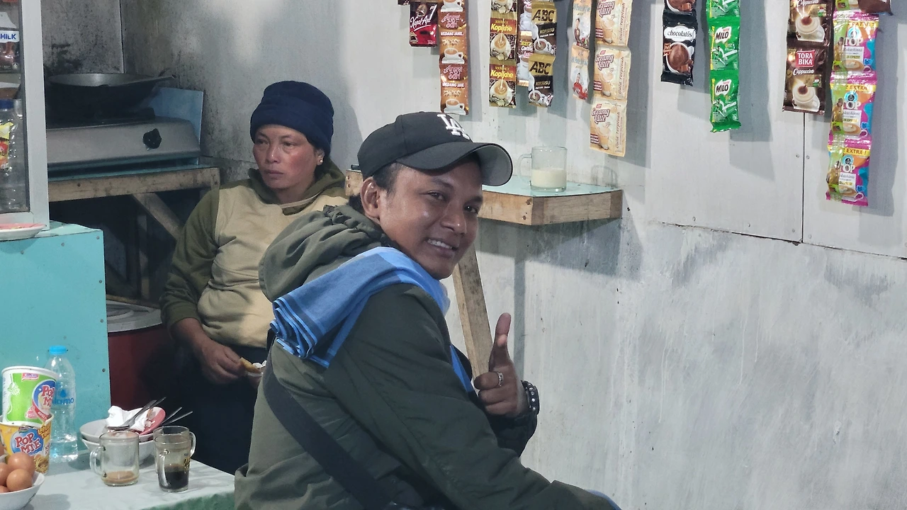 이젠 화산에서 가이드해주었던 와르노(Warno). 세상에 이런 까불이가 있나 싶을 만큼 말 많고 웃음 많고 동작 큰 40대 남자. 특히나 그는 사진을 기막히게 잘 찍어주었다. 여행 내내 느낀 게 사진 찍어주는 것도 가이드의 아주 큰 소임 중의 하나임을, 사진 실력도 가이드의 필수 능력 중 하나임을 절감했다. 족자카르타의 전어 선생도, 와르노도 기막히게 좋은 포토존을 지정해 주고, 사진은 물론 드라마 같은 동영상을 거푸 찍어 주었다. 특히나 와르노는 ‘휴먼 드론’이라 불릴 만큼 생동감 있는 동영상을 단체는 물론 개인 별로 촬영해 주어 각자에게 인생사진과 영상을 남겨 주었다.