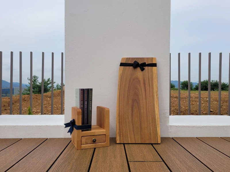 책을 읽는 이가 많지 않으니 책꽂이보다는 도마가 환영받을 거라는 조언을 이따금 듣는다. 선물하려 만드는 게 아니라 만들다 보니 선물하는 것이기에 나 좋은 것을 만들 뿐이다. 나의 본질과 닿아 있는 것은 백 번을 만들어도 백 번 다 도마보다는 책꽂이다. 그래도 최근엔 선물용으로 만든 도마에 없던 물욕이 돋아 내 것으로 삼았다. 물보라 번지듯 둥글고 순한 무늬의 느티나무 도마와 치즈 플레이팅용으로 딱 좋을 지리코테 미니 도마. 도마가 예쁠 줄은 몰랐다. 박달나무 도마도 하나 더 가져볼까. 점점 물욕이 돋는구나.
