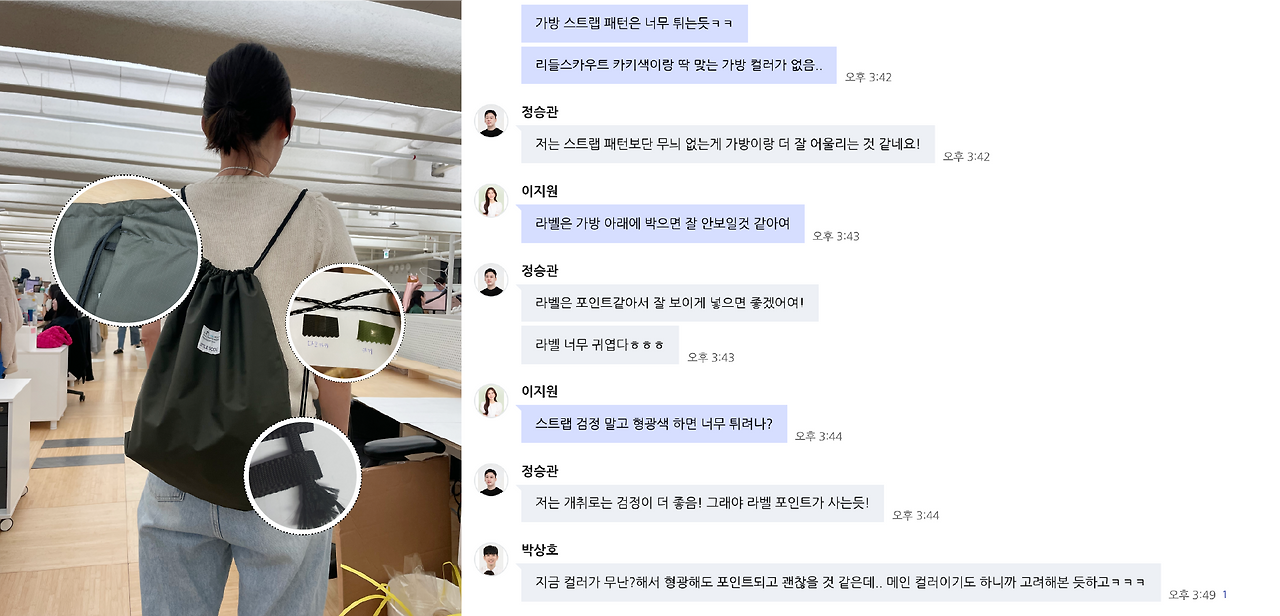 웰컴패키지의 제품 구성을 결정한 다음, 모든 제품을 자체 제작하기는 어려운 환경이었기 때문에 대부분의 제품은 여러 기성품의 재질과 컬러, 형태를 비교한 후 가장 적합한 제품을 구매하는 방식으로 진행했습니다.