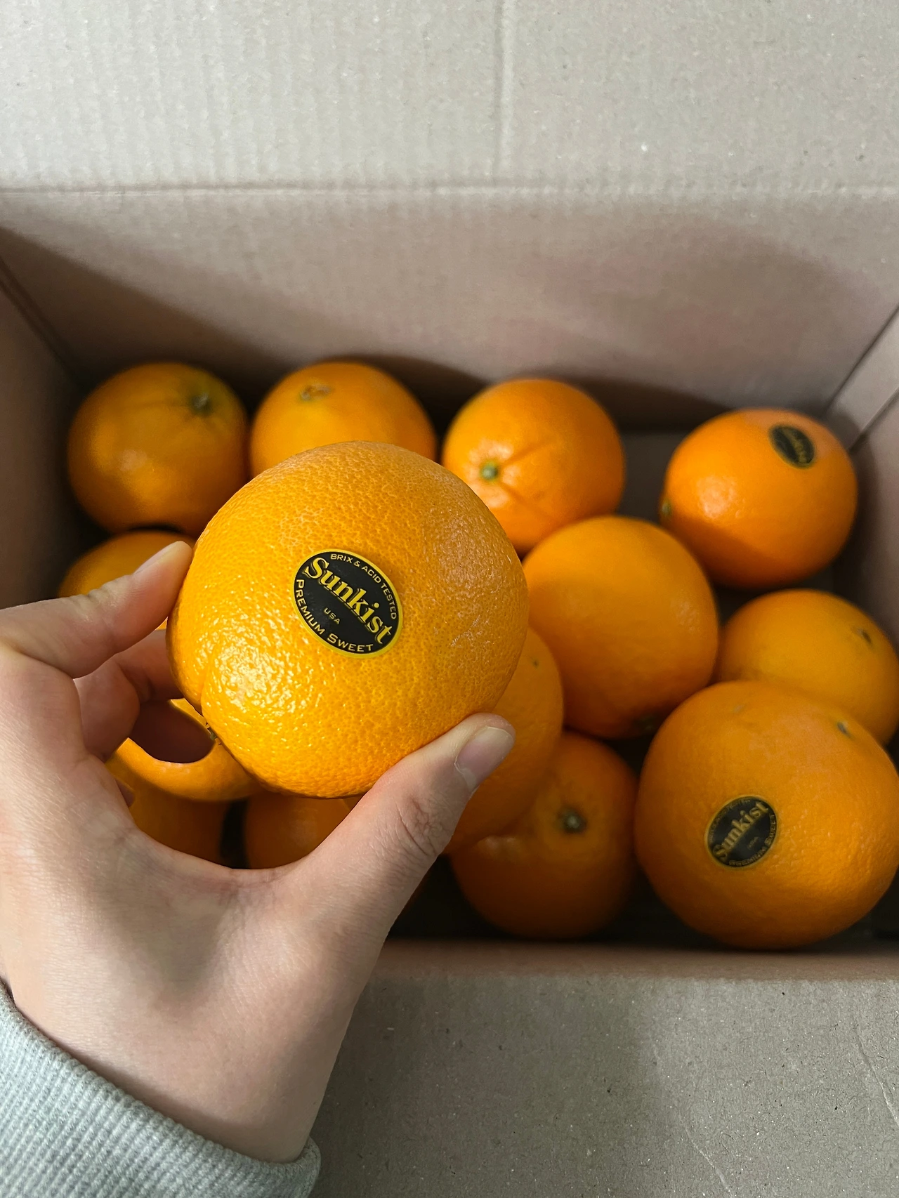 고맙게도 친구가 과일을 보내줬다. 임신 중에는 딸기, 오렌지 등과 같은 상큼한 과일이 먹고 싶어 진다. 딸기는 임신 초기에 연속해서 몇 주 먹었더니 질려버렸다. 그래서 요즘은 하루에 오렌지를 2-3개 먹는다. 오렌지는 껍질 까기도 편하고 시원하고 상큼해서 입덧에 좋은 과일이다.