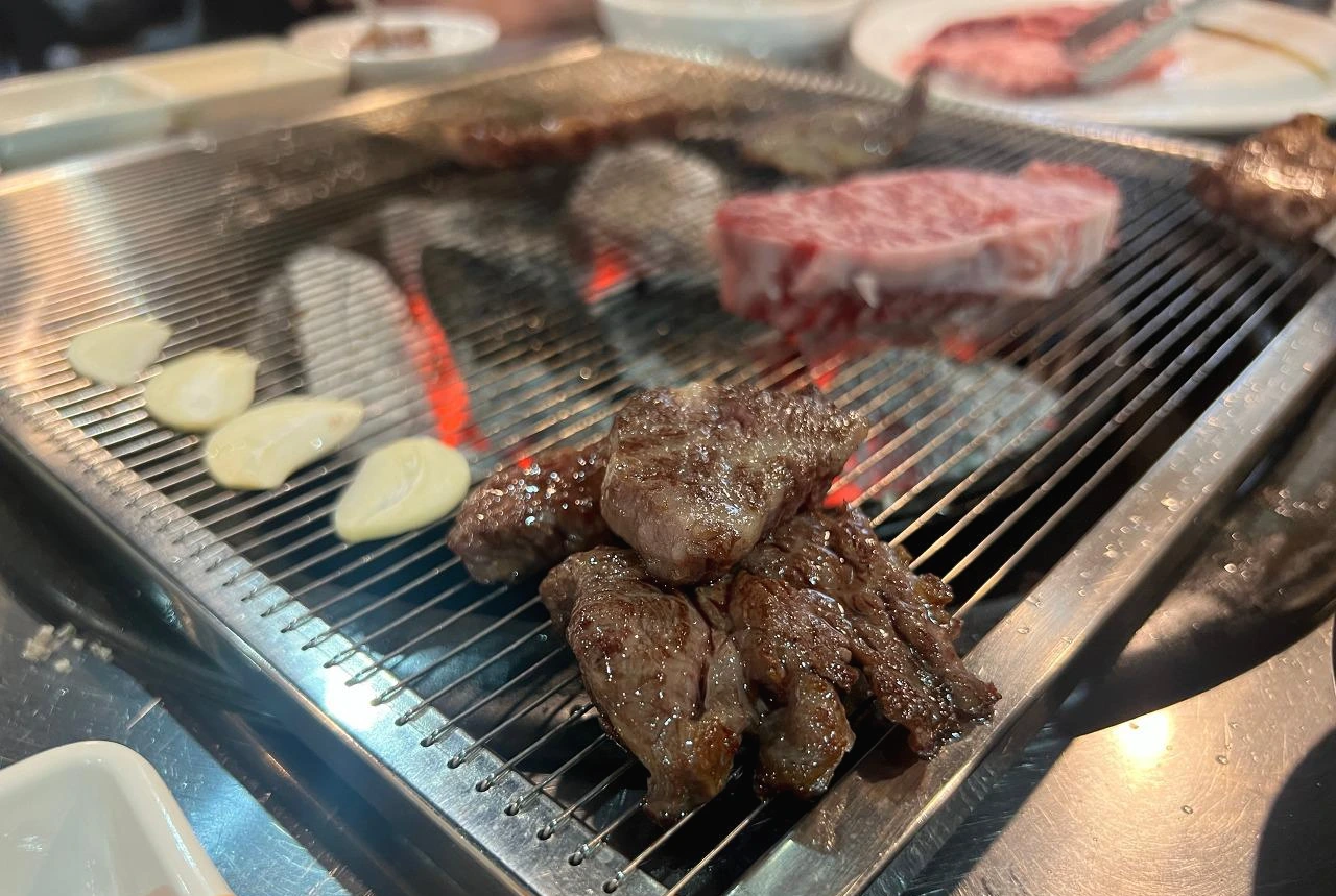 고깃집에 가기 전만 해도 속이 안 좋아서 제대로 먹지 못할 거라 생각했는데 웬걸? 엄청 많이 잘 먹고 왔다. 남편이 노릇노릇 맛있게 잘 구워진 고기를 내 앞에 탑 쌓듯 쌓아줬다. 육사시미는 고소한 참기름에 톡 찍어 먹으니 맛있다. 임산부도 육회, 육사시미를 먹어도 될까 고민했다. 임신 중에 회, 육회, 육사시미 등 날음식은 신선한 음식이면 섭취해도 괜찮다. 단, 한여름에는 조심해야 한다.