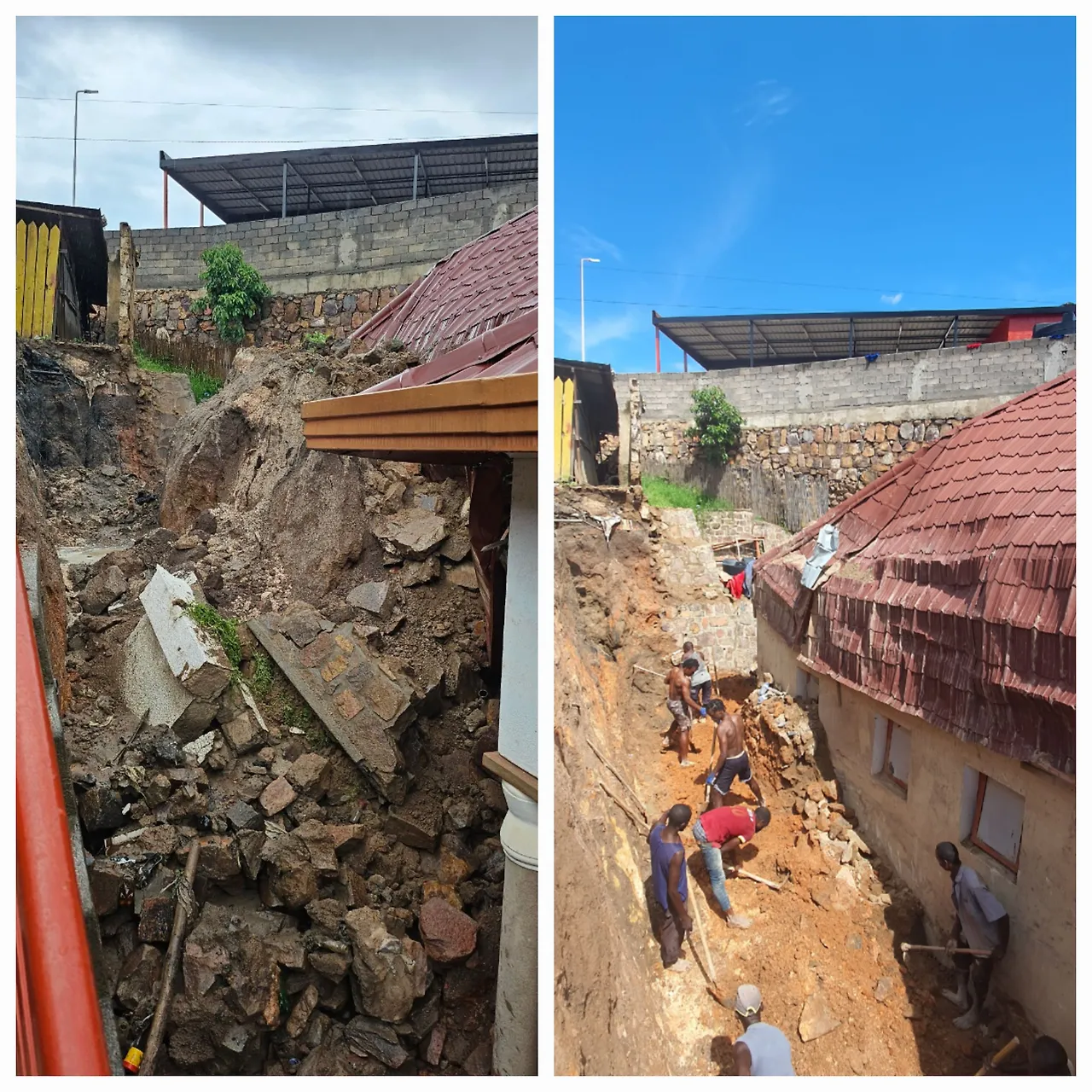 그 무너진 현장을 처음 마주했을 땐 막막했지만, 월요일부터 수요일까지 르완다 한인 분들과 인부들이 함께 힘을 모아 무너진 잔해를 치워냈습니다.