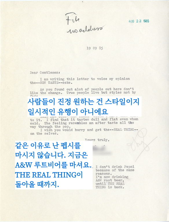 당시 소비자로부터 받았던 실제 편지 (출처 : 한국코카콜라 홈페이지)