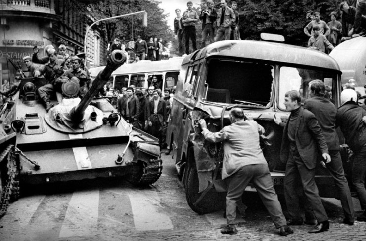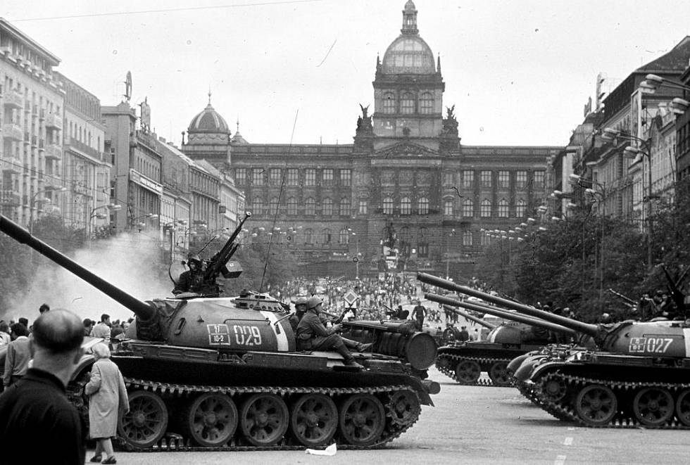 이 개혁의 성공으로 곧 유럽 공산체제의 도미노식 붕괴가 될 것을 염려한 소련은 군사적인 행동에 착수합니다. 곧 소련이 주도하는 바르샤바 조약군이 6천여 대의 탱크로 무장한 75만의 군대를 이끌고 체코-슬로바키아로 진입하게 됩니다. 그 당시의 탱크 군대는 바츨라프 광장으로까지 진입하였고 그때의 상흔을 어렵지 않게 찾을 수 있습니다.바츨라프 광장에서 바츨라프 동상을 등진 채 바라볼 때에 오른쪽은 아스팔트, 왼쪽은 돌길인 것을 확인할 수 있습니다. 바로 오른쪽을 돌아들어 온 탱크에 의해 돌들이 빠져나왔고 아픈 기억을 잊지 않기 위해서 왼쪽 돌길과는 다르게 아스팔트로 복구해 놓은 것을 확인할 수 있습니다.