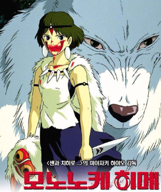 이 포스터를 보고 있으면 우리나라가 떠오르지 않을 수 없습니다. 민족말살정책에 의해 일본어 교육을 실시하고 강요하여 우리의 민족성을 말살하려 했던 일제 강점기 때의 우리나라. 그만큼 슬라브 민족과 한민족은 굉장히 많이 닮아있습니다. 자신만의 언어와 문자를 가지고 있다는 것, 주변 강대국에 의해 민족성을 잃을 뻔한 것 등 약소국가로서의 동질성을 보여줍니다. 그리고 이 포스터가 재밌는 이유가 한 가지 더 있습니다. 앞의 여자 아이를 주목하면 일본 애니메이션과 굉장히 흡사하다는 것을 알 수 있다. 그중에서도 미야자키 하야오 감독의 원령공주 포스터는 많은 유사점을 보입니다. 몸은 왼쪽이 아닌 오른쪽으로 틀었고 들고 있는 펜과 공책은 칼과 탈로 그리고 시선은 정확히 정면을 응시하고 있다는 것을 볼 수 있습니다.