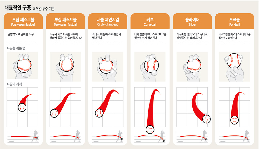 여기서 한 가지. 커쇼의 이 세 가지 구종(포심 패스트볼, 슬라이더, 커브)은 아주 고전적인 구질들이다. 커터, 싱커, 포크볼, 스플리터 등 다양하고 변칙적인 구종이 넘치며, 최소한 4가지 이상은 구사하는 게 기본인 현대 야구에서 가장 뻔한 구종 딱 3가지만 가지고 메이저리그를 평정한 이유는 뭘까? 그건 바로, 이 구종들의 위력이 모두 메이저리그 최정상급이기 때문이다. 일반적인 투수는 대표 구종이 한 가지인 반면, 커쇼는 3가지가 모두 대표 구종인 셈이다.