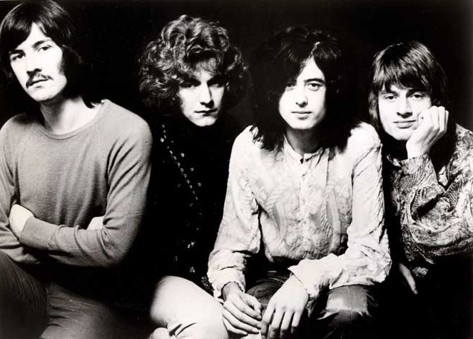 레드제플린 : 좌측부터 존 보냄(드럼), 로버트 플랜트(보컬), 지미 페이지(기타), 존 폴 존스(키보드). 멤버 개개인이 레전드급 뮤지션이었던 록그룹. 존 보냄이 약물중독으로 사망하자, 리더인 지미 페이지는 미련 없이 그룹을 해체해 그야말로 전설로 남았다. 왜 해체할 수밖에 없었는지는 모비딕(존보냄 드럼 솔로곡)을 들어보면 안다. 우측은 최고 명반인 4집. 재킷에 아무런 글자도 없던 독특한 앨범 표지로도 유명하다. (출처 : 나무위키)